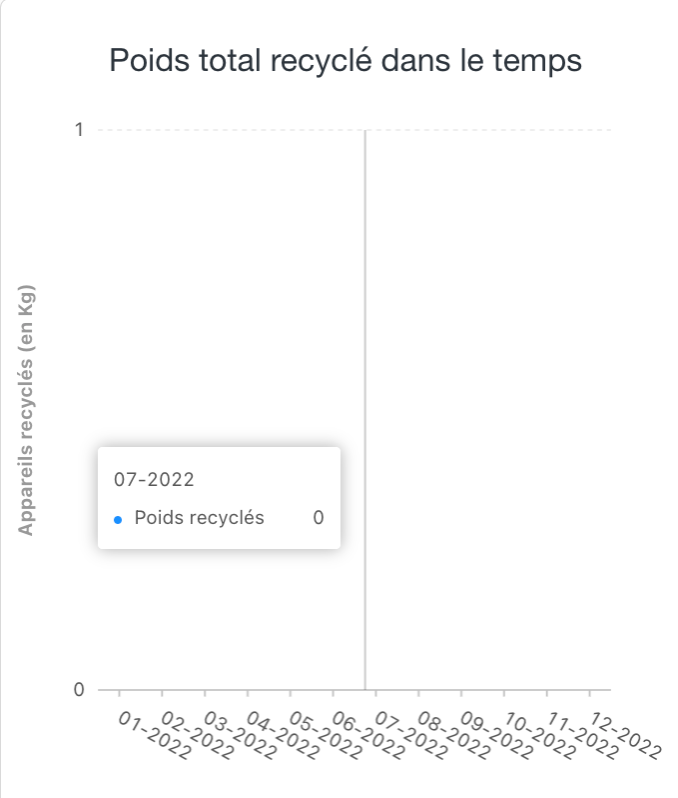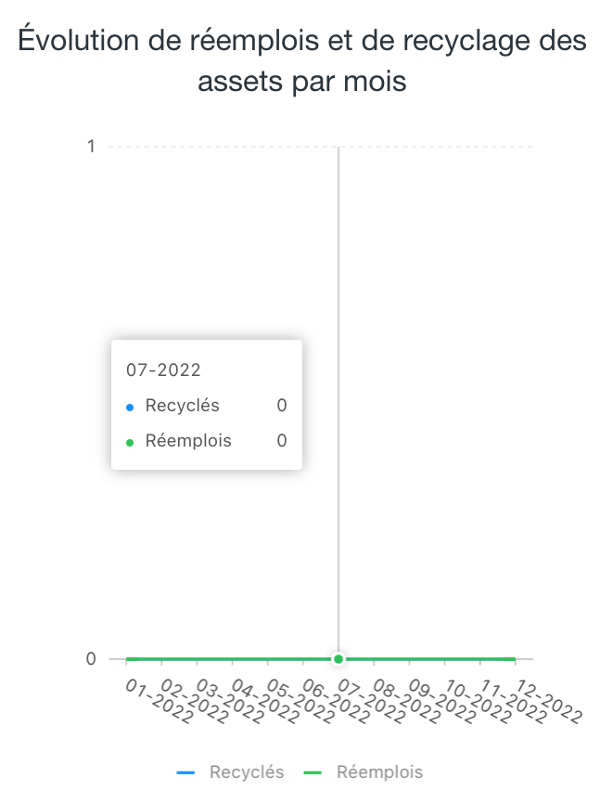 Représentation graphique de l’évolution de réemplois et recyclage des assets par mois