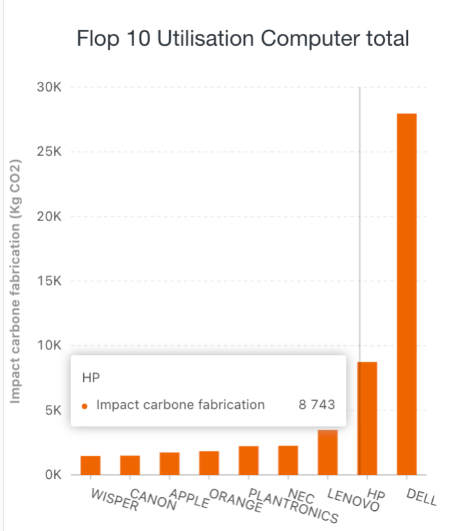 Graphique illustrant le nombre de Kg émis/ impact carbone lors de la fabrication des PC du parc