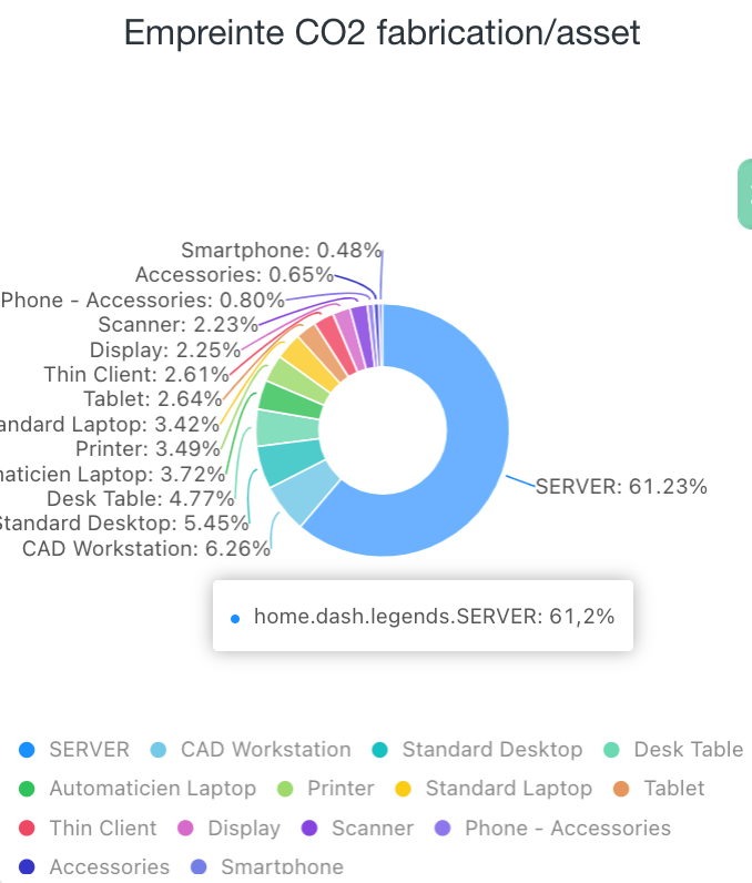Représentation en % de l’impact carbone à la fabrication par type d’asset, par rapport à l’impact carbone total