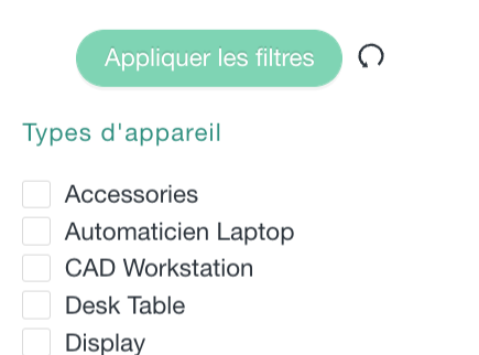 Types d’appareil : permet de sélectionner une ou plusieurs catégories.