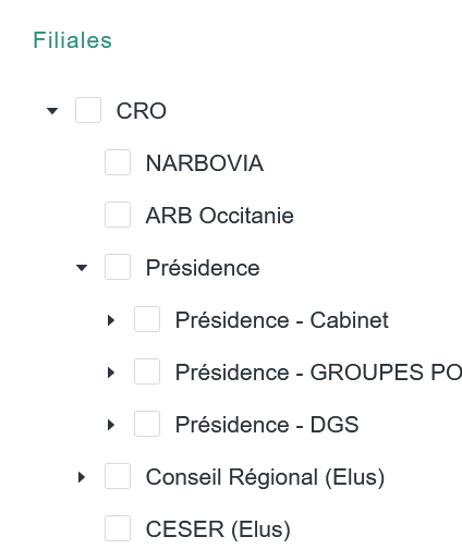 Filiales : permet de sélectionner une ou plusieurs organisations.